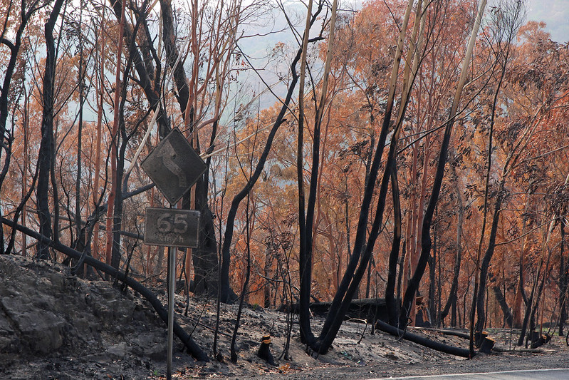 The devastation of the fires really does need to be seen to be believed. While I didn’t take any photos enroute, it was like riding through the apocalypse. There was no wildlife, and everything was just burnt out - like this photograph taken by Ian Sanderson on Putty Road a few weeks before my trip - it continues like this for kilometre after kilometre: