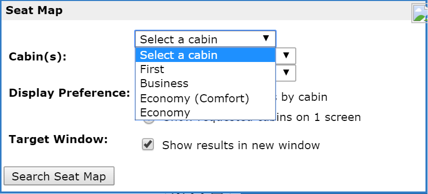 Good start. The seat maps allow you to select the cabins that are available including Economy Comfort. Let’s select the three cabins on this flight (First, Economy Comfort, and Economy) before clicking Search.