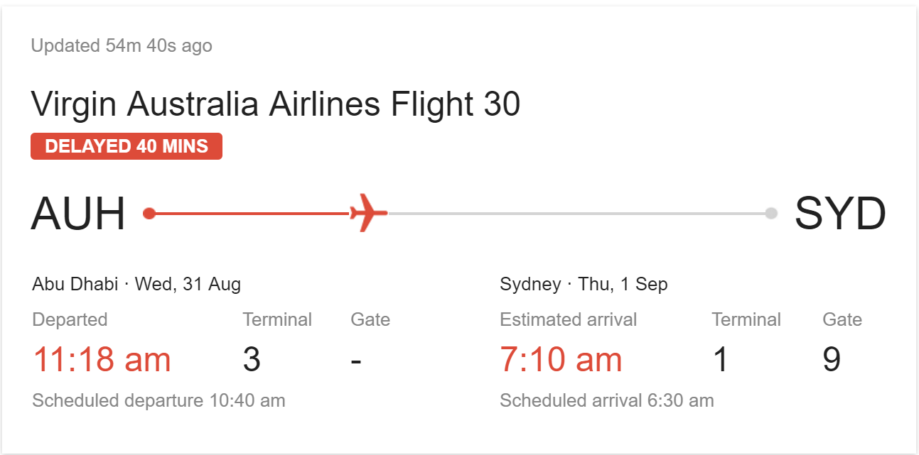 Passengers flying from Abu Dhabi to Sydney today were treated with the refreshed aircraft for the first time on this flight, albeit with a slight delay getting into the air: